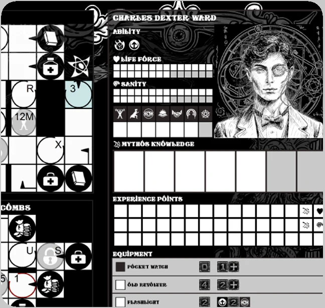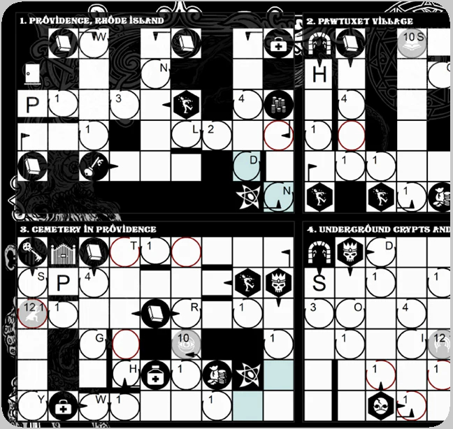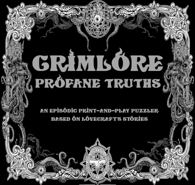 GRIMLORE: Profane Truths is an episodical print-and-play word-finding and dice-manipulation game with role-playing aspects. In every episode (or case file), you try to fill several scenarios with letters to form dictionary words to progress in the story and to defeat your opponents. As you progress, the character that you represent gains more knowledge and equipment to help them in their case.