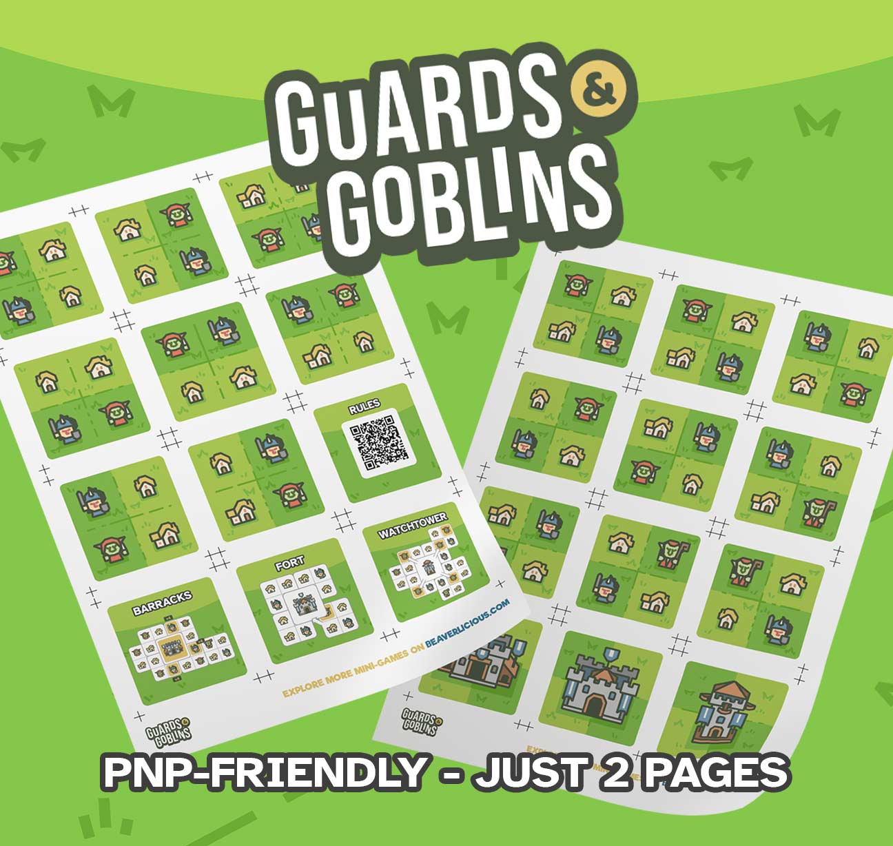 Guards & Goblins challenges you to protect helpless villagers from a relentless goblin horde. With the help of brave guards strategically posted around the villages, you’ll deploy cards and devise tactics to keep the goblins at bay and safeguard your people!