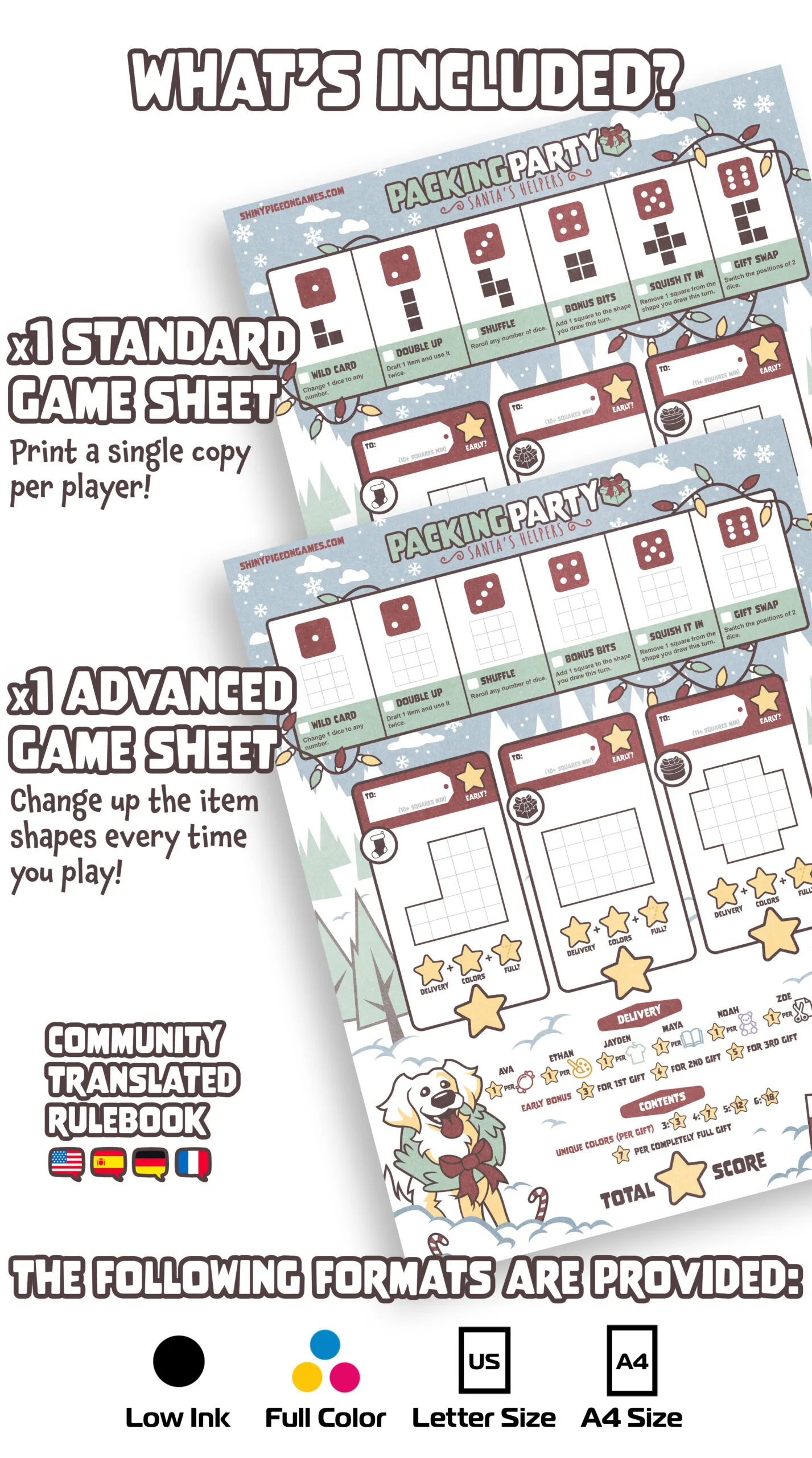 This print at home game can be played with up to six players or as a solo experience if preferred. Plus, there’s no crafting needed! Just print out the provided sheets, grab some dice and markers, and you’re ready to start playing 🖨️🎲✍️