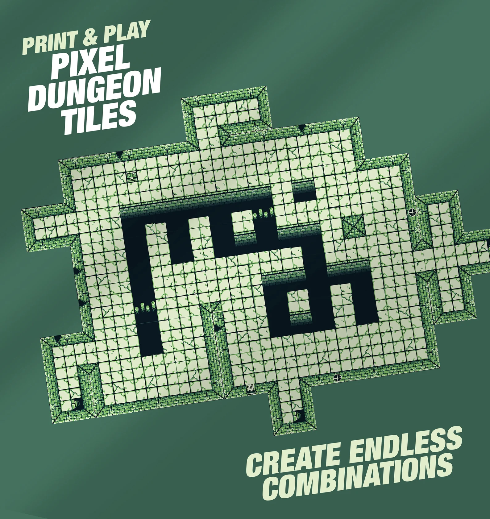High quality pixel-styled tiles, ready for printing at home. Enter the dungeon and feel the 90s flashback.